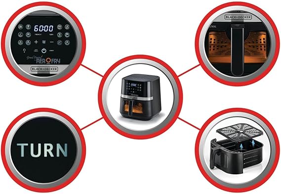 استمتع بطهي صحي ومتعدد الاستخدامات مع قلاية بلاك أند ديكر الهوائية موديل AF5800-B5 بسعة كبيرة تبلغ 8.5 لتر، مما يجعلها مثالية لتحضير وجبات عائلية بسهولة.