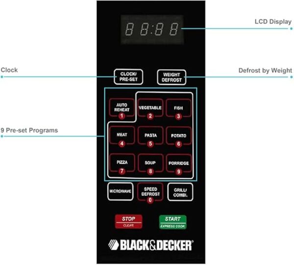 استمتع بتجربة طهي متعددة الاستخدامات مع ميكروويف بلاك آند ديكر مع شواية، سعة 30 لتر (MZ3000PG-B5)، المصمم لتلبية احتياجاتك اليومية في المطبخ. تأتي هذه الوحدة بسعة 30 لتر، مما يجعلها مناسبة للعائلات والأفراد.