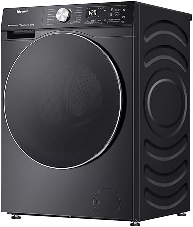 غسالة هايسنس أمامية بسعة 12 كجم، لون أسود، WD5S1245BB — تتميز بسعة كبيرة مثالية للعائلات، وتقنية العاكس المتطورة لتوفير الطاقة، وبرامج غسيل متعددة تناسب مختلف أنواع الأقمشة.