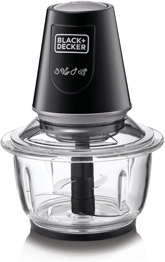مفرمة زجاجية متعددة الوظائف من بلاك آند ديكر GC400-B5 بمحرك قوي بقدرة 400 واط ووعاء زجاجي كبير جدًا بسعة 1.2 لتر، مثالية للتقطيع والفرم والهرس وتكسير الثلج.