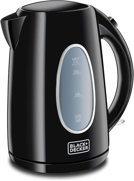 اغلِ الماء بسرعة وكفاءة مع غلاية بلاك آند ديكر الكهربائية JC69-B5 بسعة 1.7 لتر وقدرة 2200 واط، مثالية لتحضير الشاي والقهوة والمشروبات الساخنة خلال دقائق.